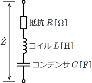 RLC直列回路の合成インピーダンスは、次式で与えられる。