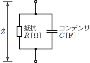 RC並列回路の合成インピーダンスは、次式で与えられる。
