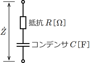 RC直列回路の合成インピーダンスは、次式で与えられる。