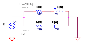 回路に流れる全電流Iは、電源電圧Eから回路全体のインピーダンスZを除算することにより、求めることができる。