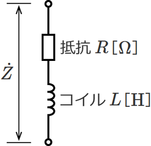RL直列回路の合成インピーダンスは、次式で与えられる。