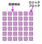 ロジックセルは、FPGAの全面に分散して配置されており、これらを内部配線で自動接続することによりユーザの求めるファンクションを実現する。