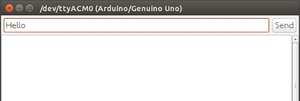 シリアルモニタの入力フィールドに"Hello"と入力して、[Send]ボタンを押下する。