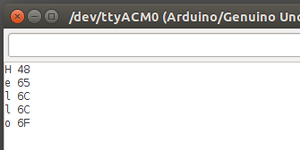次に、シリアルポートから文字を1バイト毎に入力して、それをASCIIコードに変換してシリアルポートに出力するサンプルコード以下に記述する。