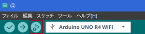 - Arduino IDE 2メイン画面左上にあるデバッグアイコンを選択して、デバッグを開始する。