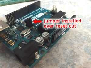 幸い、リセットラインからコンデンサC5を切り離すことができるジャンパーカットをPCBに残している。